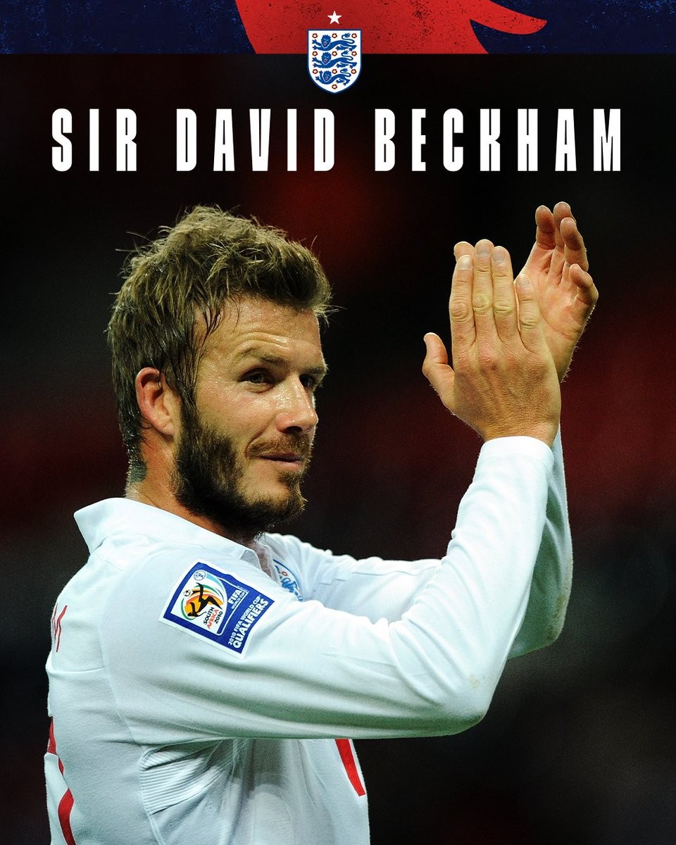 英格兰队还发布了一段贝克汉姆在01年的世界杯预选赛上,任意球直挂球门右上角绝杀希腊,带领英格兰挺进世界杯的视频,以祝贺贝克汉姆被授予爵士称号。当时的解说员在小贝打入这粒“英格兰最贵进球”后,激动地说道“授予此人爵位!(Give that man a Knighthood!)”如今,距离这粒进球已经过去24年,贝克汉姆也成为爵士。